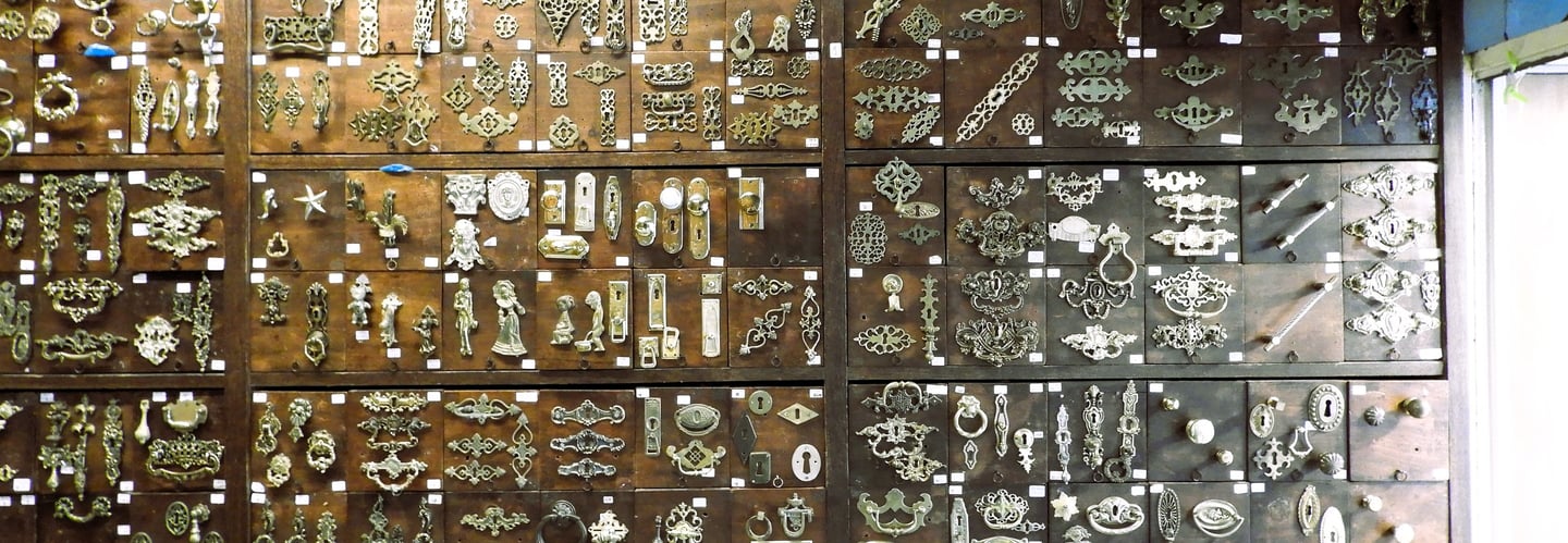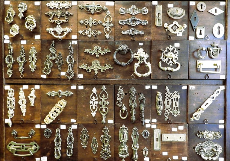 Descubra puxadores e peças raras, como o design exclusivo de Lucien Donnat, um verdadeiro achado.